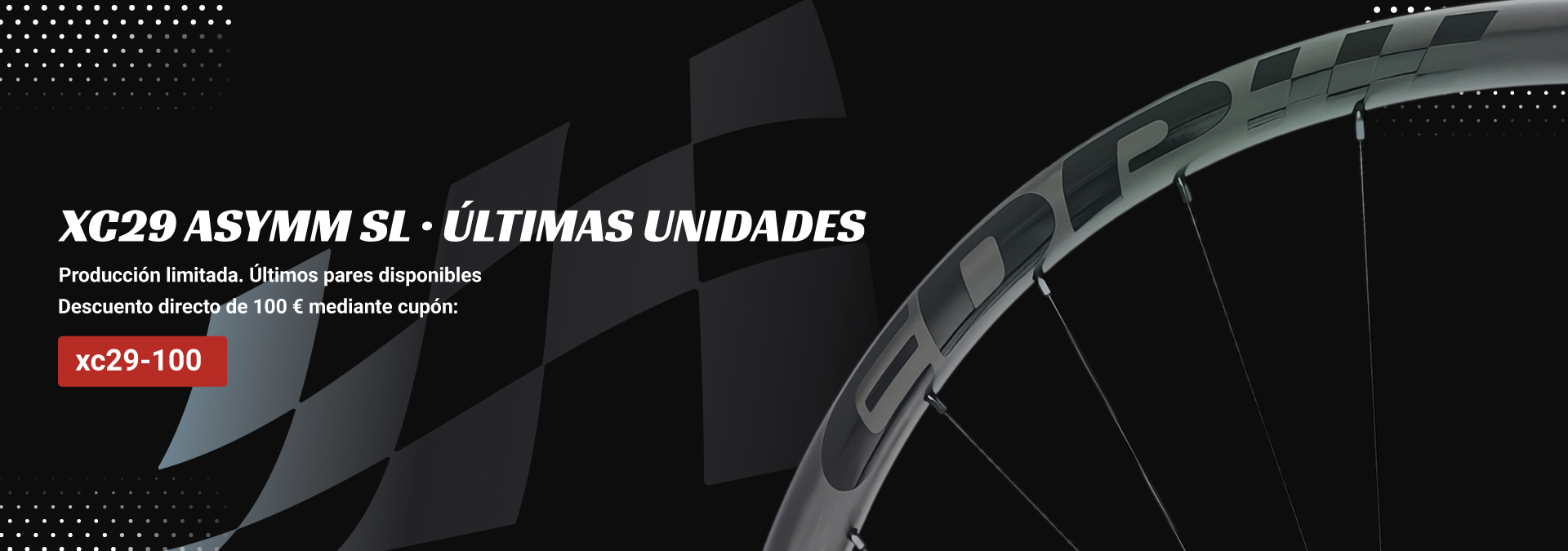 La llanta XC29 Asymm SL está producida en fibra de carbono de alto módulo Toray T700 y T800. Pensada para lograr el mejor compromiso entre rigidez lateral y absorción vertical.